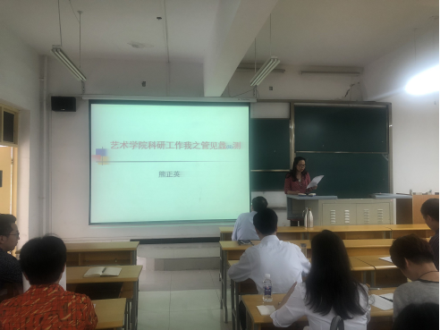熊教授从提高艺术教师科研能力的必要性、科学研究的功能、安康学院艺术教师科研能力现状原因分析、提高艺术教师科研能力的举措建议等四个方面。针对现阶段艺术教师科研能力现状,对我院教师提出了“‘教’‘研’,互动,促教会研”等诸多宝贵的建议。提醒我们身为艺术教师,要把握好教学与科研之间的关系,多了解艺术学科发展动态,把握住当前最前沿的艺术发展方向,才能更好地开展学术研究。