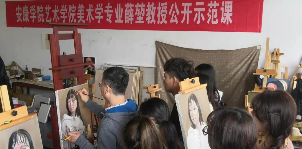 为推进“美术学”一流专业建设,11月5日上午,呻吟高潮内射在线邀请西安美术学院薛堃副教授,为美术学专业油画方向40余人作油画头像公开示范课,院系领导及学院教学督导观摩了此次公开示范课。薛堃老师讲、画结合、现场示范,整体效果良好。