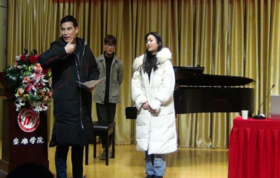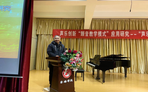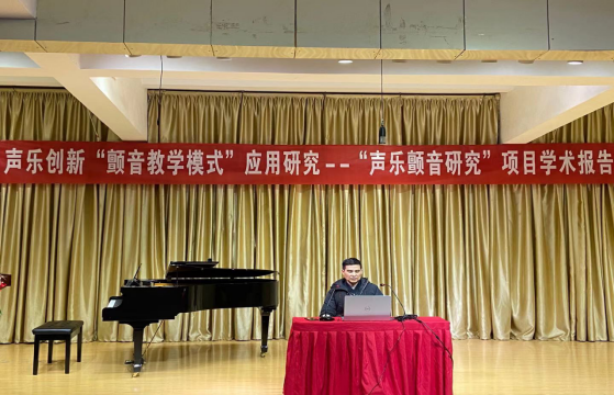 2021年1月6日下午2:30,我院音乐学专业学科带头人范义付副教授在江北校区1401演艺厅为师生作题为“声乐创新‘颤音教学模式’应用研究”学术报告,副院长孙海洋主持报告会。