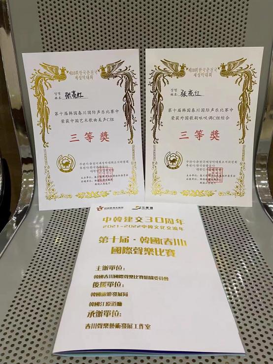 2022年7月18日,第十届“韩国春川国际声乐比赛”在辽宁沈阳盛京大剧院圆满落幕,来自国内各地的300多名青年歌唱家参加此次比赛。我院青年教师张亮红博士、王博渊博士参加此次比赛,并荣获“中国艺术歌曲美声教师组”三等奖及“外国歌剧咏叹调教师组”三等奖两项。