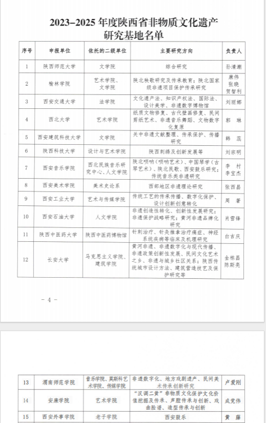 12月22日,陕西省文化和旅游厅、陕西省教育厅公布了2023-2025年度陕西省非物质文化遗产研究基地名单。我院申报的“汉调二黄非遗传承保护研究基地”成功入选。