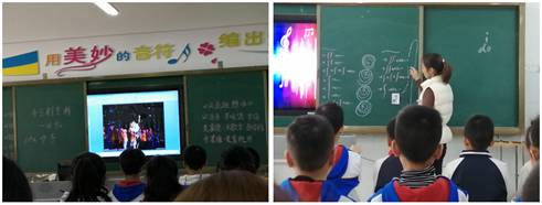 本次见习以观摩公开课形式进行,两位教学能手赵芳老师和黄东霞老师为学生准备了非常精彩的教学展示。两位优秀教师分别以《会跳舞的小猪》和《回忆》为课题,以节奏节拍训练为主线,以角色扮演为切入点,通过小游戏和多媒体创设了细致的教学场景。他们凭借丰富的教学经验和风趣幽默的教学语言,由浅入深的带入引导,形成了良好的师生互动场面,课堂气氛轻松愉快。在师生有效互动的过程中,通过游戏的形式把书本上的文字和音符转化为肢体语言表达出来,学生在不知不觉中完成了知识的把握与应用。