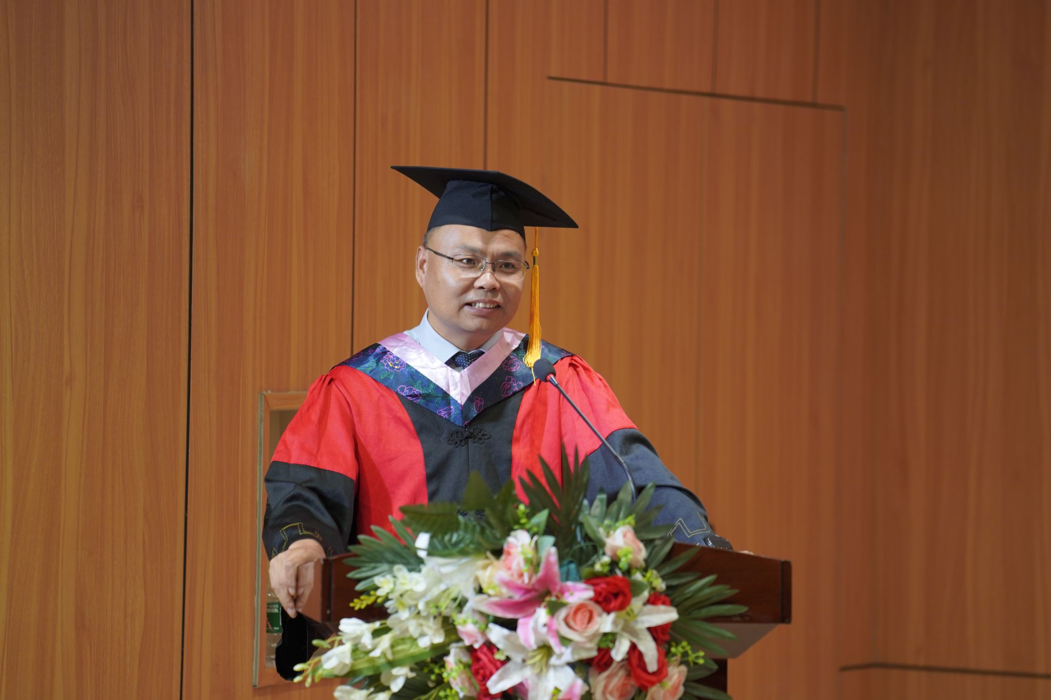 院长成党伟在致辞中从三个方面寄语毕业生:一是希望同学们要怀揣梦想、笃定自信,争做人生的筑梦者,勇敢地面对未来的挑战,书写人生底色。二是希望同学们要笃行不怠、坚定信念,敢做人生的追梦者,使青春无悔、人生无憾,彰显人生本色。三是希望同学们要担当作为、踔厉奋发,竞做时代的圆梦者,把小我深度融入祖国发展的大我中,在国家发展的进程中展现安康学院人应有的家国担当,绽放人生亮色。希望同学们在人生道路上要站得高、立得正、行的稳、走得远。