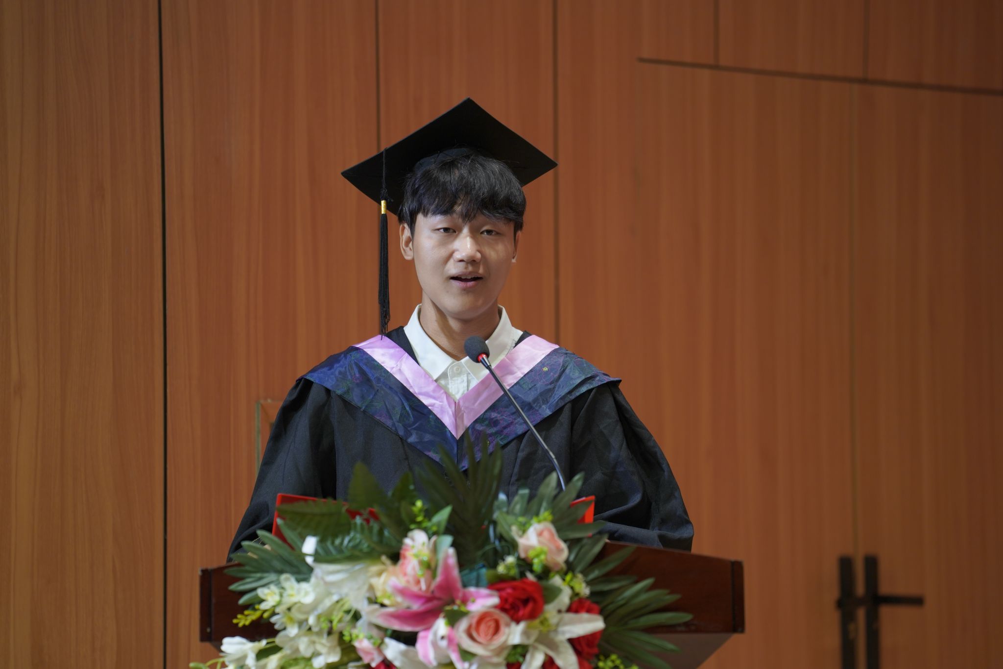 教师代表任川博士希望同学们在未来的日子里能永葆艺术基因,以不甘平庸的雄心带来的创造之意志、超越之精神,奋力书写精彩的人生篇章。2020级音乐学专业张思凡代表毕业生对学校及老师的培养表示感谢,将不辜负老师们的殷切希望和深情嘱托。做新时代有志青年、逐梦而行,奋力书写为中国式现代化挺膺担当的青春篇章。
