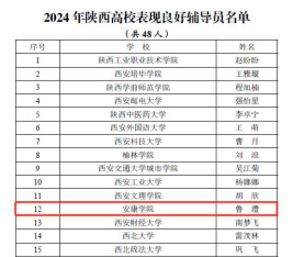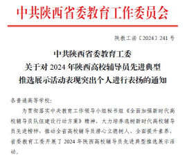 近日,中共陕西省委教育工委对2024年陕西高校辅导员先进典型推选展示活动中表现突出个人进行表扬通报,我院辅导员鲁澧荣获“2024年陕西高校表现良好辅导员”称号。