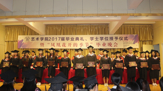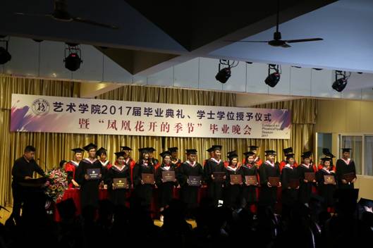 6月27日晚,呻吟高潮内射在线“2017届毕业典礼、学士学位授予仪式暨‘凤凰花开的季节’毕业晚会”在江北校区1401演艺厅隆重举行。安康学院党委委员、副校长钟生海,呻吟高潮内射在线党政领导王辉、雷升录、鲍丽、孙海洋,办学顾问党天才、副高以上职称教师、各系教师代表、辅导员及全体毕业生参加了毕业典礼并观看毕业晚会。毕业典礼由办公室主任肖剑主持。