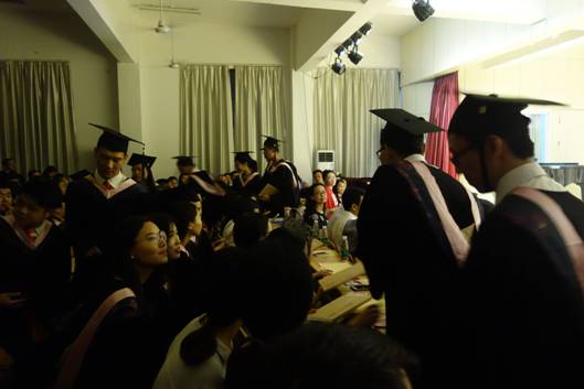 副院长孙海洋宣读了《安康学院关于对2017届本科毕业生授予学位的决定》,随后学位授予导师为获得学士学位的同学逐一颁发学位证书,并扶正流苏。