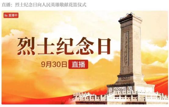 上午9:30,向人民英雄敬献花篮仪式正式开始,军乐团奏响《义勇军进行曲》,全场高唱中华人民共和国国歌。直播现场,全场肃静,习近平总书记等党和国家领导人同各界代表面向革命烈士纪念碑列队肃立。铿锵有力的歌声在烈士陵园上空回响,烈士纪念碑前鲜花静放。大家缓步绕行,瞻仰革命烈士纪念碑,寄托深切哀思,表达崇高敬意。