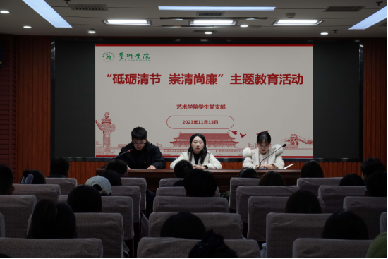 在理论学习环节,学工办主任、学生支部宣传委员鲁澧老师领学了习近平总书记在2022年春季学期中央党校(国家行政学院)中青年干部培训班开班式上的讲话,团总支书记李博老师领学了中共中央政治局常委、中央书记处书记蔡奇21日至22日在陕西宁陕调研时的讲话。学生党支部书记魏麟以“砥砺清节 崇清尚廉”为主题讲授专题党课,主要围绕中国共产党人的初心使命、新时代的大学生肩负的使命担当两个方面展开讲述。她结合实际,从转变观念、知行合一等方面鼓舞同学们在新时代用行动诠释廉洁自律,让廉洁与青春同行,扣好人生第一粒扣子。一是要志存高远,尚德笃行。积极学习廉洁知识,自觉做到讲规矩、守纪律,知敬畏、存戒惧;二是要明辨是非,慎终如始。用明纪守法坚守人生底线,自觉培养“三省吾身”的意识,不断提高思想觉悟和道德修养;三是要崇廉尚洁,敦行致远。鼓励同学们自觉秉持和发扬求真务实精神,始终保持严谨务实的作风。