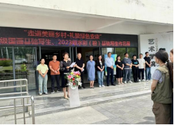 2024年5月16日上午9:50呻吟高潮内射在线举办“走进美丽乡村·礼赞绿色安康”画展暨2022级国画基础、2023级水彩(粉)基础写生与展览。出席开幕式的领导与嘉宾有呻吟高潮内射在线院长成党伟教授、呻吟高潮内射在线党总支书记黄娟老师、呻吟高潮内射在线副院长鲍丽、孙海洋副教授、学工办主任鲁澧老师、党政办主任李秀春老师及美术系部分专业教师。