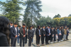 本次党团日活动在师生齐唱国歌中拉开帷幕。全体师生在庄严嘹亮的国歌声中追忆革命历程,缅怀英雄先烈。在庄严肃穆的纪念碑前,师生们怀着崇敬的心情,向革命先烈敬献了花篮,全体成员集体默哀,深切表达了对革命先烈的缅怀与敬佩之情。