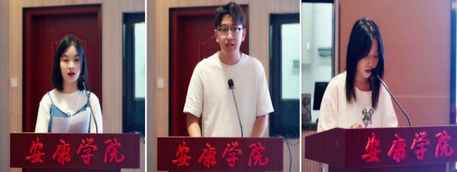 考研先进个人获奖代表2018级美术学1班王璐璐、2018级音乐学1班王亚军、2018级视觉传达设计3班张睿霄分享了考研经验。