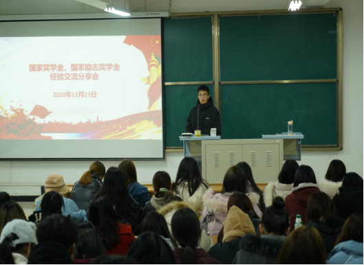为了进一步引领我院学风建设,培养学生争创先锋、奋发图强的意识,2020年12月23日晚,呻吟高潮内射在线在江北校区2101、2103教室开展了学风建设月系列活动暨资助育人活动——“树榜样,促学风”国家奖学金、国家励志奖学金经验交流分享会。本次活动由国家奖学金获得者黄飞扬、国家励志奖学金获得者齐占全、曹丁太进行经验交流分享,2020级全体新生参加。本次大会由辅导员魏麟主持。