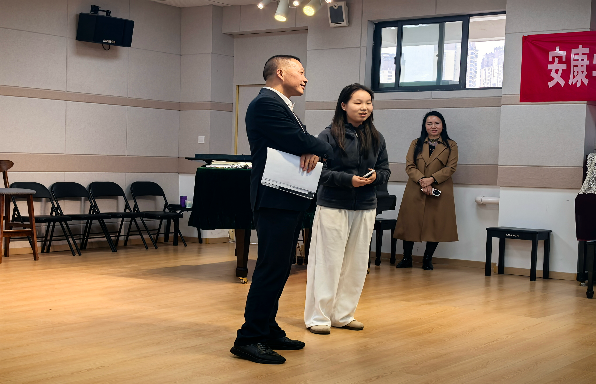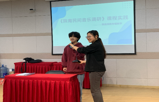8日下午,课程组教师和田洪涛主任及随行王老师带领大家在2314大教室进行《陕南民间音乐调研》课程实践活动。实践活动包括传承人田洪涛及王燕现场演唱、陕南民歌传承人访谈、学生演唱各地民歌、民歌学唱大PK(民歌传声筒游戏)、AKU合唱团演绎紫阳民歌小合唱《郎在对门唱山歌》等。实践活动内容丰富、准备充分,学生参与热情高涨,课程教学取得良好的效果。