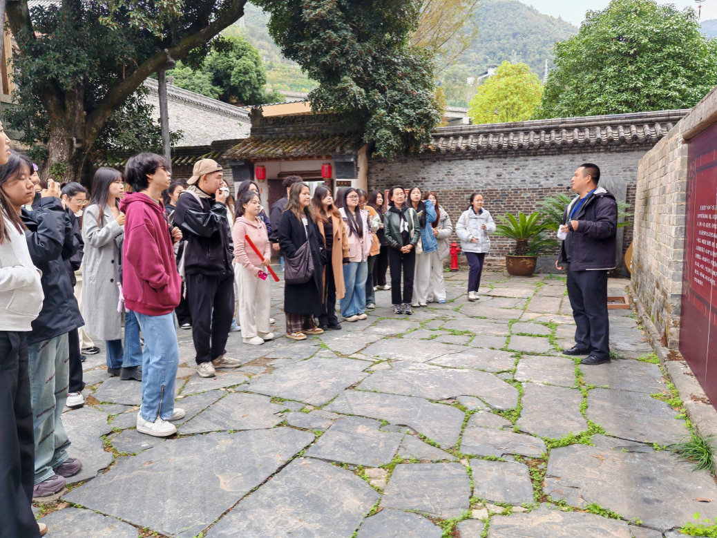11月5日上午,师生一行80余人首先来到国家重点文物保护单位——紫阳县北五省会馆群,在会馆工作人员热情的介绍下,大家参观了遗址内完整的古戏楼、古桂树、旧楹联、壁画、川主馆等遗址。这里丰富的民间文化资源让大家流连忘返。