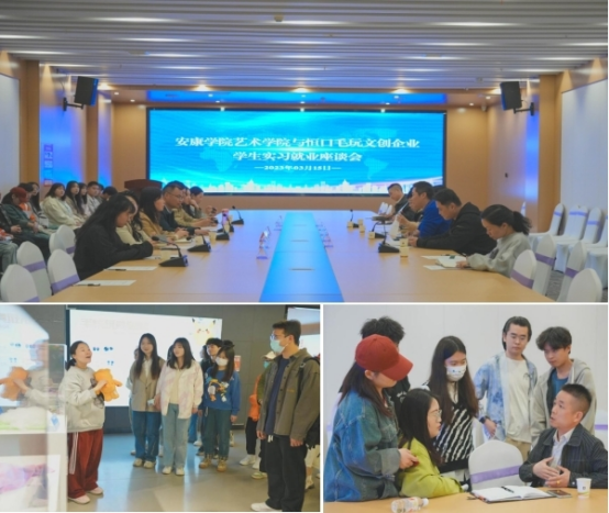 最后,学院走访团来到安康毛绒玩具文创产业五大中心。中心召集了秦巴漫创玩具产业运营管理有限公司、安贝斯玩具科创有限公司、宇智合鑫科技有限公司、火麒麟广告传媒公司、集优社实业有限公司、辉煌房产经纪有限公司等六家知名企业参加座谈交流会。会议由五大中心副总经理刘愚主持,他首先代表企业对我院给予五大中心的人才支持表示感谢,并表达了今后长期合作的愿望。黄娟谈到,开展访企拓岗促就业行动是提升人才培养质量、促进毕业生高质量就业的迫切需求。在新时代如何培养适应社会需求的人才,提升学生就业质量,还需要多到企业调研,听取建议和意见,并感谢五大中心长期以来对我院就业实习工作的大力支持。成党伟介绍了学院专业设置、办学特色、人才培养和招生就业情况。参会企业负责人李娜、王冠晟、叶孟葳等分别介绍了公司概况、需求岗位、职业发展等,并就深化校企合作、优化人才培养模式提出建议。