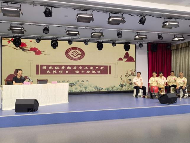 陈馆长首先介绍了平利弦子腔近年来取得的发展成就。平利弦子腔2005年入选陕西省非物质文化遗产名录,2011年入选国家级非遗名录。它起源于清朝嘉庆年间(1790——1820),至今已传承至第5代,现有国家级传承人一人。2018年我院与平利文化馆以弦子腔为主要内容联合创作的《弦子传情颂安康》在第十八届安康龙舟文化节开幕式上首演,并参加cctv15《百年歌声》录制,引起了广泛的好评。