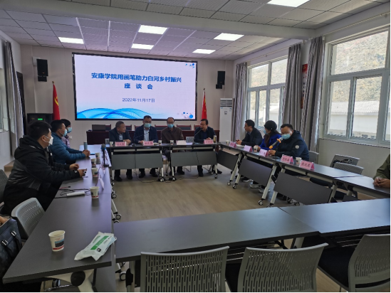 在白河县“汉江画廊”调研现场,调研组一行在白河县相关负责人的陪同下现场考察了项目实施现场,随后召开了“安康学院用画笔助力白河乡村振兴座谈会”,双方就白河“汉江画廊”临岸千米画廊项目进行了讨论论证,我校参会人员从专业的角度给出了可行性建议和意见。在白河调研期间,我院调研组还到茅坪镇中心小学看望了实习生,观摩了“互联网支教”我院学生线上音乐课堂教学。并对2所基层学校美育开展进行了专题调研。