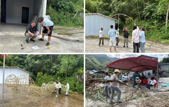 在乡村振兴的大背景下,艺术与乡村文化的结合成为了推动地方发展的新生力量。在创作过程中,学生们充分利用竹子、茅草等自然材料,通过巧妙的构思和精细的制作,将乡村田园中的寻常之物赋予了全新的艺术价值。这一创作理念不仅体现了对环境保护的尊重,也彰显了废物再利用的环保精神。