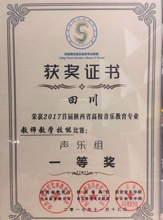 11月13日,我院田川、王正祺老师在陕西省教育厅艺术教育委员会主办、西安音乐学院音乐教育学院承办的“2017首届陕西省高校音乐学专业教师教学技能比赛”中分获声乐组一等奖和钢琴组二等奖,体现了我院音乐专业教师在全省高校中良好专业素质和教学能力。