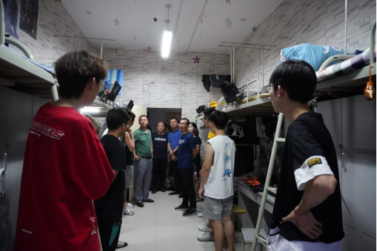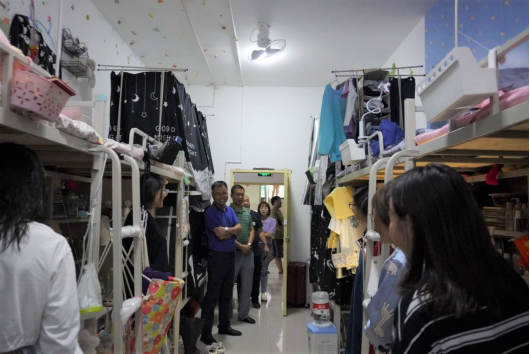 为深入了解学生返校后学习生活情况,确保学生返校后有一个安全稳定的学习生活场所。8月23日晚上7点,呻吟高潮内射在线党总支书记樊仁杰、副院长成党伟、党组织副书记李万明带领辅导员杨厚东、艾蕾、魏麟、薛涛到学生宿舍看望返校学生。