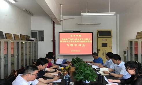 为深入贯彻落实习近平总书记来陕考察重要讲话精神、学校2020年全面从严治党及稳定安全工作会议精神。 5月21日下午,我院在江北校区艺术楼2206会议室召开学院全面从严治党、稳定安全专题会暨习近平总书记来陕考察重要讲话专题学习会。学院领导班子成员、两办主任、党建专职组织员、党总支委员、各支部书记和团总支书记参加,会议分别由副院长鲍丽和党总书记樊仁杰主持。