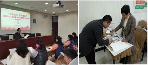 本次基层党支部共建活动将党建与业务有机结合,在活动中将我院美术学专业特色融入主题教育之中,杜敏、毛德龙分别为幼儿园教师进行版画课程培训并耐心回答了老师们的提问,解决了幼儿园教育教学中的实际问题,切切实实为身边群众办实事、办好事。此外我院10名积极分子同学向幼儿园捐赠了自己精心创作的20幅装饰画作品。