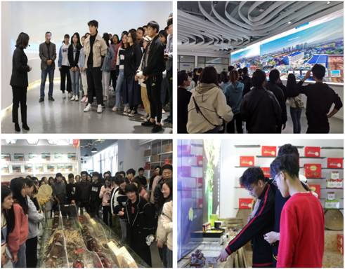 在讲解员带领下,同学们参观了综合服务大厅、扶贫主题展馆、贫困户创业就业服务中心、产品交易服务中心、县区体验馆等服务平台。在综合服务大厅,同学们通过宣传片的介绍,了解了安康扶贫项目、精准扶贫力度、以及扶贫空间如何利用网络科技手段实现扶贫帮扶。在参观县区体验馆时,同学们通过陈列的琳琅满目的特色产品,对安康各县区精品农特产品大致有了一定了解、对安康的资源禀赋、地域风情有了直观的感知,为美术创作提供了参考。通过最安康民生超市的体验和讲解员的介绍,了解了扶贫空间采用“三直”销售模式,特别是对安康扶贫空间打通720°VR实景购物渠道,线上线下同步在售产品实施“一物一码”,通过产品扫码实现实景游览参观,线上线下交融,打破了传统消费边界,同学们有了更新的认识。