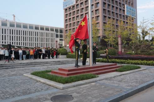 伴着朝霞,旗手们着装整齐,护送着鲜艳的五星红旗来到国旗台,全体同学齐唱国歌、行注目礼、升国旗,庄严肃穆,团员青年们用嘹亮的歌声表达对祖国的热爱,深情告白祖国。