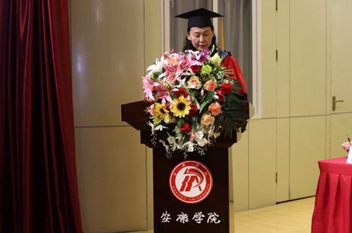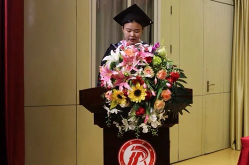 教师代表张慧发言,希望同学们树立远大的理想信念,堂堂正正做人,踏踏实实做事;虚心向长辈、同事学习请教,做个自信乐观的人。