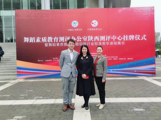 2018年4月25日,由中国成人教育协会、中国舞蹈家协会主办,陕西师范大学承办的陕西测评中心挂牌仪式暨舞蹈基础训练行业标准教学课程展示会议在陕西师范大学长安校区终南音乐厅举行。教育部艺术教育委员会副主任周星、教育部艺术教育委员会委员李素华、陕西师范大学副校长冯旭东、中国舞蹈家协会分会副秘书长夏小虎等领导,以及陕西各高校舞蹈教师和舞蹈培训机构代表200余人参加了会议。我院舞蹈教师李玉娇受邀参加了本次会议。