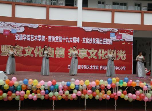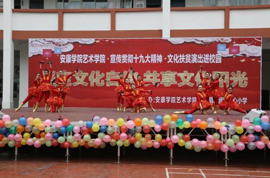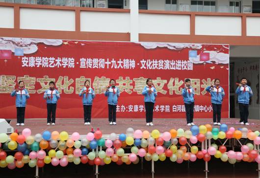 12月15日,安康学院呻吟高潮内射在线70余名师生,赴白河县西营镇中心小学,举办“坚定文化自信,共享文化阳光”为主题的贯彻落实十九大精神、文化扶贫演出进校园”活动。政府督学徐维山、县教育局人事股长黄开国、西营镇党委书记王海波以及2000余名师生、群众参加了活动。