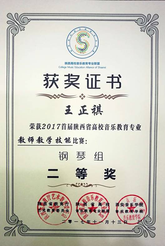11月13日,我院田川、王正祺老师在陕西省教育厅艺术教育委员会主办、西安音乐学院音乐教育学院承办的“2017首届陕西省高校音乐学专业教师教学技能比赛”中分获声乐组一等奖和钢琴组二等奖,体现了我院音乐专业教师在全省高校中良好专业素质和教学能力。