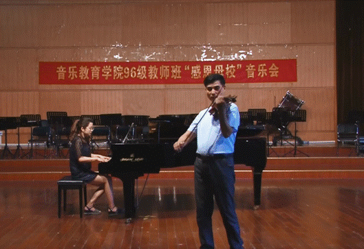 6月4日,我院学科带头人范义付副教授应邀参加由武汉音乐学院校友会主办的“感恩母校”音乐会。音乐会前,范老师作为代表向母校赠送了锦旗。音乐会上范老师演唱了歌曲《故土情》、演奏了小提琴协奏曲《梁山伯与祝英台》。