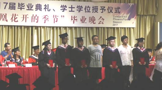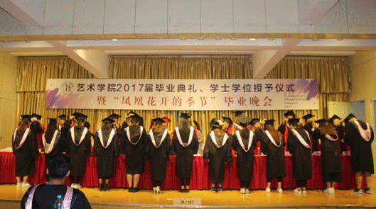 副院长孙海洋宣读了《安康学院关于对2017届本科毕业生授予学位的决定》,随后学位授予导师为获得学士学位的同学逐一颁发学位证书,并扶正流苏。