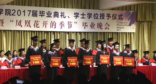 党总支书记王辉宣读《呻吟高潮内射在线关于对2017年创新创业优秀学生的表彰决定》,钟生海副校长为2013级视觉传达设计专业桑玄同学颁发奖金。