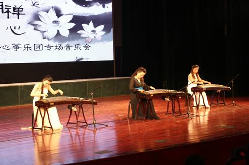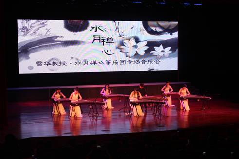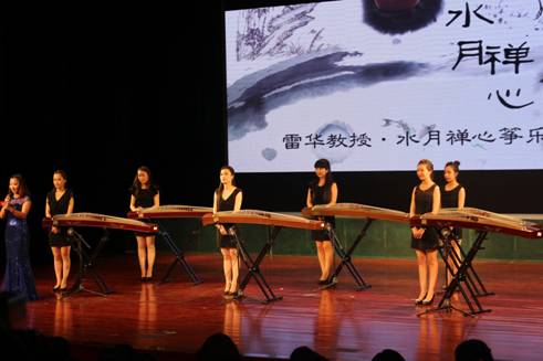 14日晚上七点半,雷华教授及西安音乐学院“云水禅心”筝乐团在安康剧院为我院学生及安康市古筝爱好者奉献了一场《云水禅心古筝专场音乐会》。一曲《战台风》体现了工人阶级战天斗地的气势。《秦之声》给我们带来的是乐曲欢快、节奏鲜明的感觉,一种全新的尝试来自《牡丹亭》中的《游园》唱段。根据日本作曲家水野彦利移植而成的《炎》采用东方独特的音阶与激昂的节奏混合,将整场演出推向高潮。