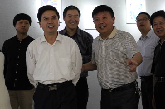 10点30分,安康学院校长陈刚教授、副校长向继明教授专程赶来观看了展览,并参加了画展座谈会,陈校长就此次画展进行了热情洋溢的评价,他指出教师展现自己的作品既是教学的需要,也是学校人才培养的需要。要倒推人才培养方案,按照社会的需求来制定人才培养方案,使学生大学四年毕业后能够进行自主创业、就业。安康美术家协会主席李剑平先生、安康市书法家协会副主席张枫先生、安康学院办学顾问党天才教授分别进行了不同发言