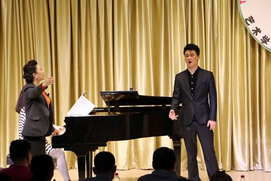 周玲教授毕业于西安音乐学院,早年留学意大利。曾获得意大利总统授予的“意大利共和国骑士勋章”,在声乐界以及声乐教育领域享有众多盛誉。讲座中,周玲教授用理论讲授的方式,为同学们列出要唱好美声所要注意的事项及要掌握的方法;同时,对意大利美声唱法的起源、发展做了详细的讲解,生动的诠释了声乐的领域魅力。随后周玲教授进行了声乐公开课教学,我院音乐专业青年教师张慧及3名学生上台演唱,与老师交流,实现了与名师的面对面沟通和学习。