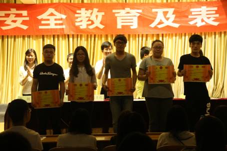 系党总支书记冯丰收首先从近期校内外发生的安全事故讲起,对夏季安全工作作了要求,他希望同学们要珍惜生命,禁止下江河、池塘游泳、防止雷击、洪水事件的发生。放假时期注意防抢、防盗、防骗、放食物中毒、中暑等,女生要注意着装,防止性侵犯,注意交通安全,杜绝打架斗殴、醺酒事件的发生。