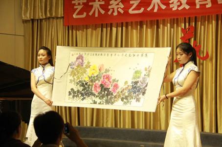 2015年5月17日晚20:00,艺术教育2012级学生“艺青春”专业技能展演在江北校区1401演艺厅拉开帷幕。本次展演以追忆青春、回首大学三年的时光作为初衷,由刘泽桢、田川老师作为总策划人,班团干部精心组织同学们积极参与,全班35名同学凝神聚力成功举办了这次展演活动。应邀观看展演活动的有系党总支书记冯丰收、系副主任雷升录、系办公室主任肖剑、艺术教育专业课老师等二百余名师生;同时还特邀了安康市儿童福利院领导、老师光临晚会现场。