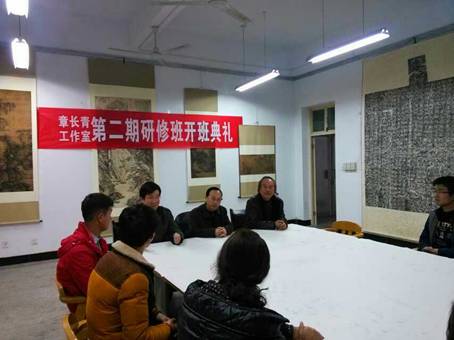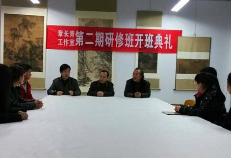 3月11日下午,我院章长青工作室第二期研修班开学典礼,在江南校区图书馆章长青工作室举行。艺术系主任单福东、系党总支书记冯丰收、绘画教研室主任孙海洋及学员20余人出席开班典礼。