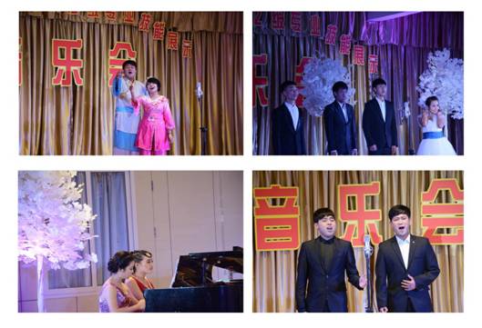 音乐会在一曲悠扬的民乐合奏《阿里山之歌》中拉开了序幕。随后,声乐演唱和二胡、古筝、琵琶、钢琴轮番登场,丝弦并奏,歌声飞扬,为观众们带来了一场不同寻常的音乐盛典。男高音二重唱《把一切献给党》,坚定有力的演唱,震撼了我们的心灵;男女表演唱《灿若星辰的目光》,表演俏皮,歌声动听,让大家感受那纯真而盛美的爱情;钢琴四手联弹《匈牙利舞曲》学生熟练的演奏技法,让我们赞不绝口,也体会到了音乐学习的辛苦;陈传琦同学表演的男中音独唱《家》,他可爱的外表、动情的歌声特别有观众缘,掌声、笑声把快乐萦绕在演艺厅的每一个角落,王闫芳同学的女高音独唱《梅花引》用女性特有的温婉特质,诠释了歌曲意境。音乐会在合唱《时间都去哪儿了》中落下帷幕。