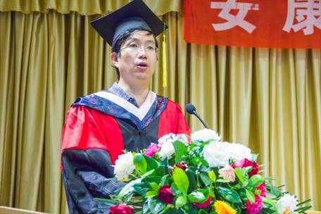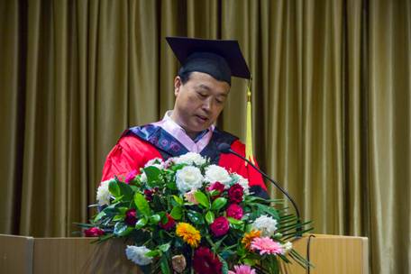 单福东主任首先致辞,他说:今天我们在这里举行一年一度的毕业典礼,对你们来说,非同寻常。这是你们人生中的一个转折标志,是你们人生征途中的一个里程碑!同学们要挺起腰杆,大步流星的走吧!你们将离开狭小的校园,步入天阔地广、充满活力的社会!希望同学们迈开大步踏上人生新的征程,你们一定会成功!你们一定能成功!是雄鹰就展翅翱翔吧!