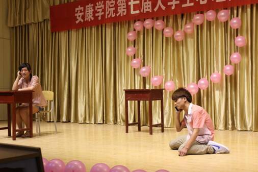 6月9日晚8点,我系举办的安康学院第七届大学生校园心理健康教育文化节系列活动之校园心理剧大赛决赛在江北校区1401演艺厅举行。学工部心理咨询中心王华樑老师、艺术系辅导员王毅老师、黄娟老师和二百余名同学观看了比赛。
