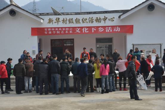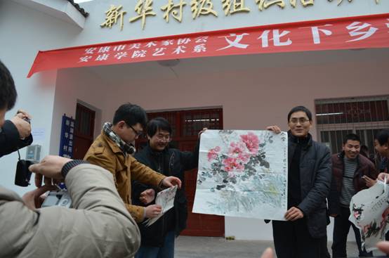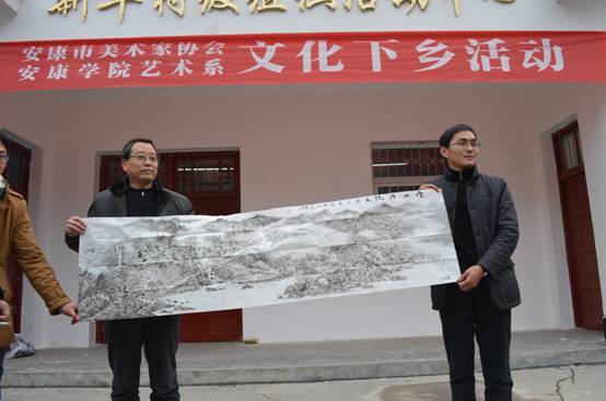 元月12日,天气晴好,阳光普照,在全国上下欢送银蛇载誉而去,欢迎骏马奔腾而来的日子里,安康学院艺术系与安康市美术家协会联合举行送文化下乡活动。汉滨区双龙镇党委书记兼镇长李晓风率党政班子在双龙镇文化站配合艺术系与安康美协开展了此项活动。