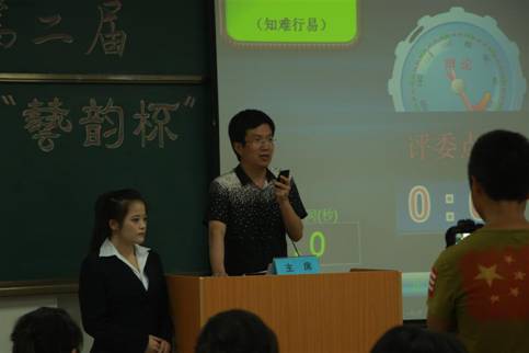2013年6月13日晚8时,我系第二届“艺韵杯”辩论赛决赛在江北校区1401教室拉开帷幕。本场决赛的评委由系党总支书记冯丰收、学工办主任刘泽桢、学生党支部书记王毅、团总支书记黄娟及系学生会主席孙玉东担任。