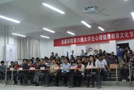 2013年5月29日晚20:00,安康学院第六届大学生心理健康教育文化节系列活动之校园心理剧大赛在江北校区2102教室顺利举行,校党委副书记胡鸿晓,学工部部长郑树青,学工部副部长车静,艺术系党总支书记冯丰收等7位老师担任本次大赛的评委。