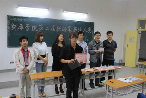 大赛预赛于5月13日下午在江南、江北两个校区同时进行,一百多名同学参赛,经过艺术系书法老师对现场作品的专业评选,最终有31名同学入围决赛。5月17日下午,决赛在江北校区1221教室进行。参加决赛仪式的有艺术系党总支书记冯丰收、学工办主任刘泽桢、辅导员王毅、艺术系团总支书记黄娟。美术学教研室主任孙海洋、美术学老师谢敏和杜敏出席仪式并担任此次决赛评委。
