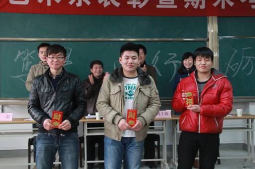 系学工办主任刘泽桢宣读了我系关于对20122013学年度第一学期“文明班级”、“文明宿舍”及艺术设计专业拔河比赛获奖团队的表彰决定。表彰奖励了三个“文明班级”,十个“文明宿舍”;向获得拔河比赛一、二、三等奖的班级颁发了奖金。